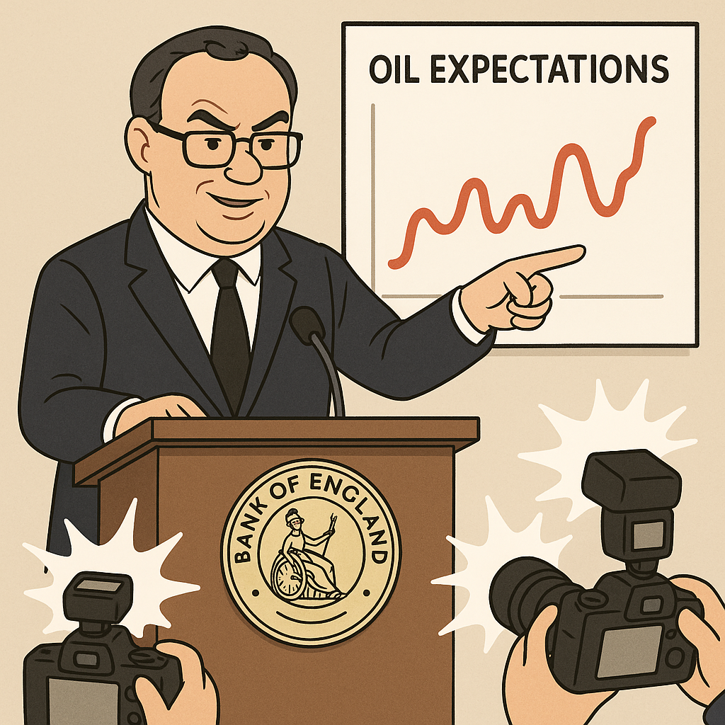 Back at the Bank of England, Bailey was asked whether there was any scenario in which central bankers would simply admit they couldn’t meaningfully control energy prices at all. He paused, adjusted his tie, and smiled in the carefully calibrated manner taught in advanced communications training.