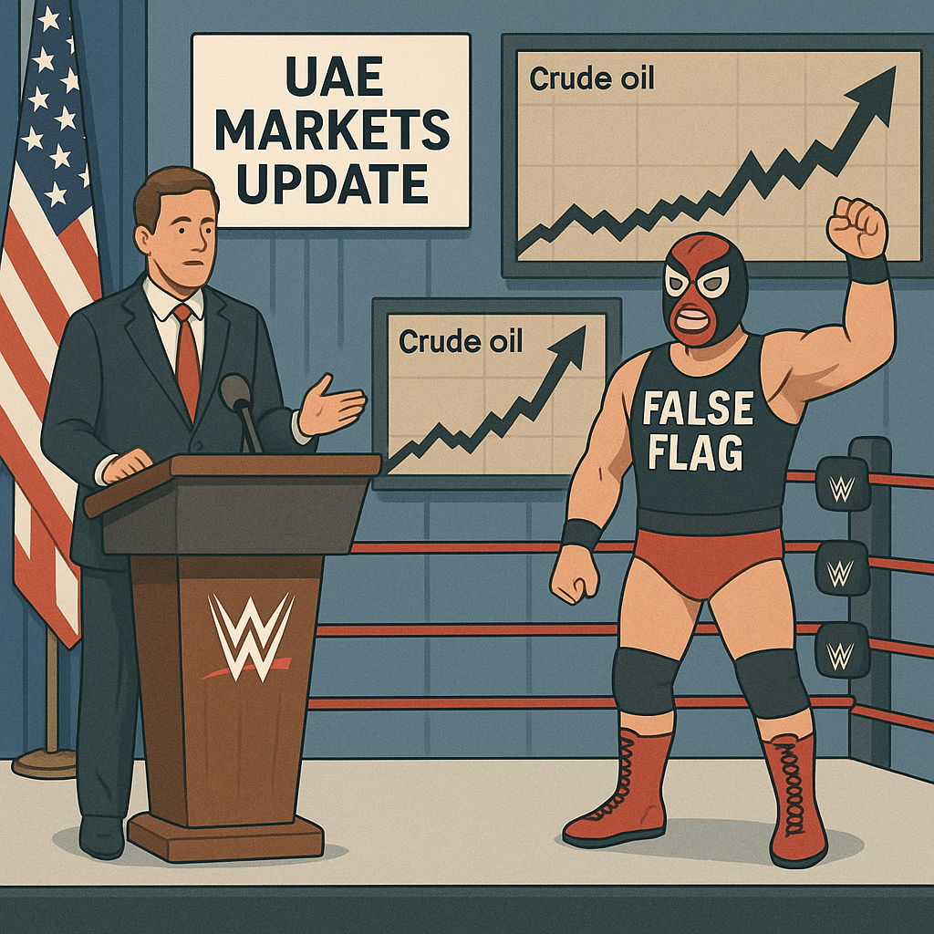 Meanwhile, the UAE plays missile whack-a-mole in the sky while its PR office frantically assures tourists that Dubai remains “open for business and brunch.” Global markets “price in uncertainty,” a phrase which, if you decode it, simply means: people who caused the uncertainty are now getting paid.