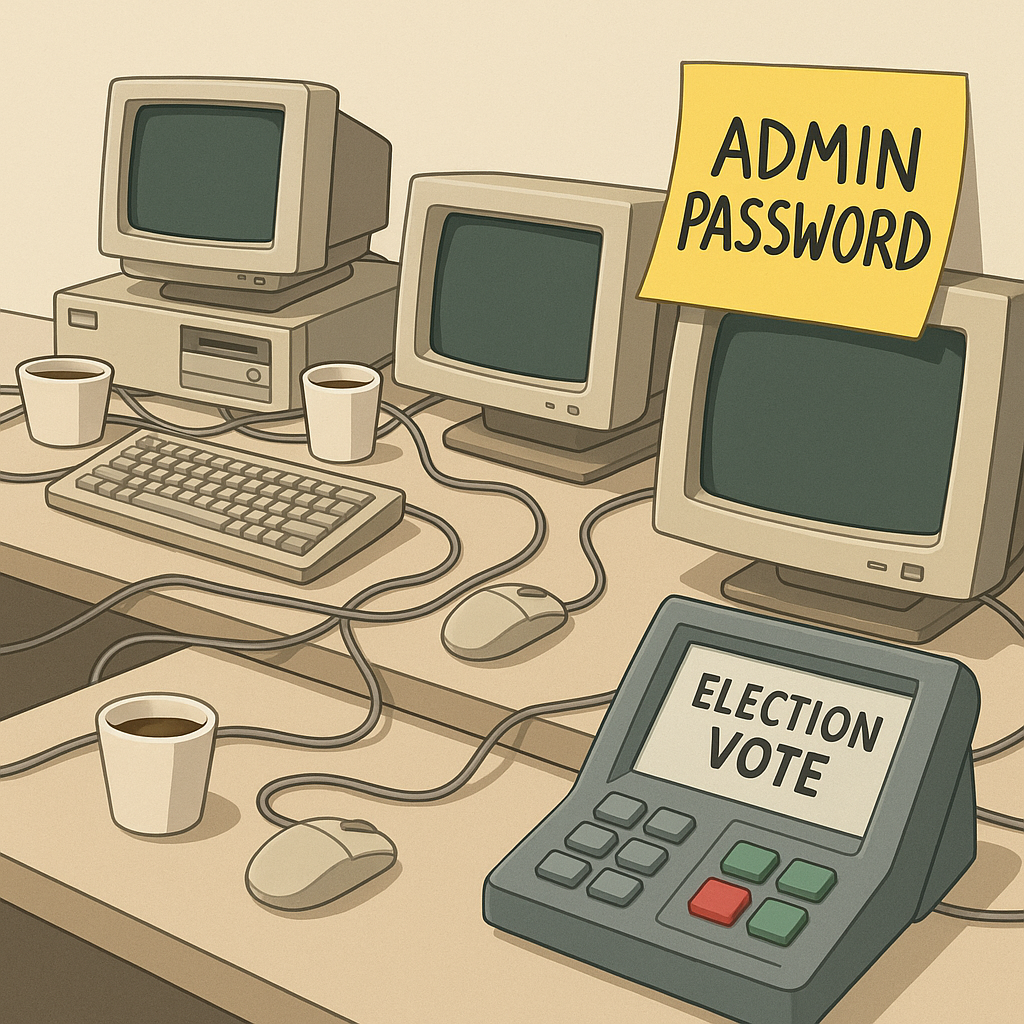 In a rational world, the FBI investigation would trigger a full-stack upgrade of election tech nationwide: proper access controls, routine security audits, actual funding, and maybe even an on-site IT professional who doesn’t also have to run the front desk. Instead, we’ll get another round of hearings where someone in a suit confidently mispronounces “MFA” and suggests printing out all the logs “just in case.”
