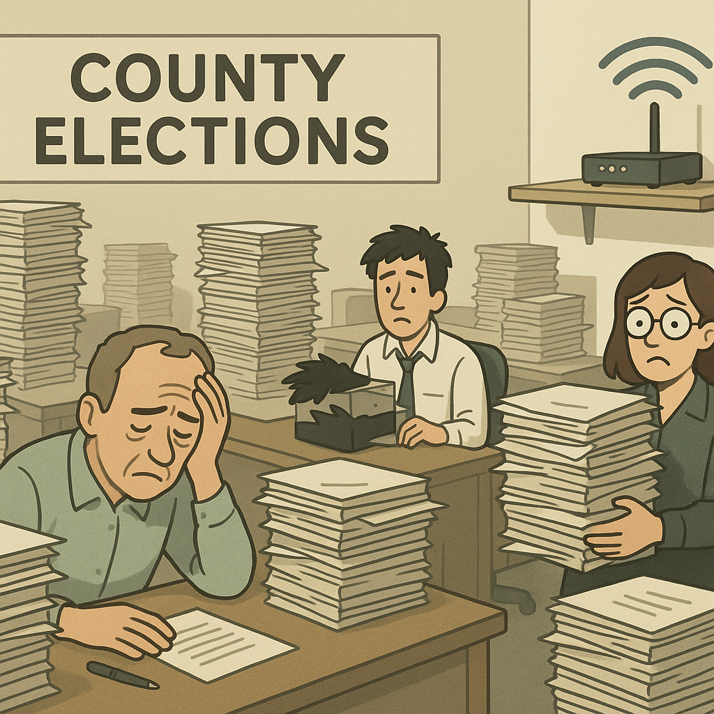 Tech companies insist they’re “protecting democracy” with cutting-edge tools. Yet in Fulton County, the actual guardians of democracy are packing Dells that scream every time someone opens more than three tabs. We’ve essentially outsourced our faith to the idea that somewhere, someone upgraded something. No one can name who. But we feel it, like Mercury retrograde.