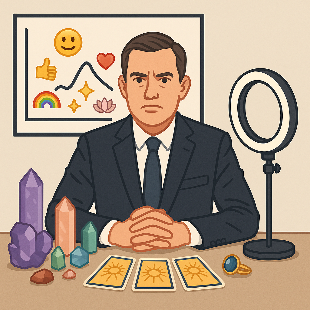 He then stepped away from the podium, lit a sage bundle, and rang a small brass bell to signal that the press conference — and possibly the era of rational markets — had officially ended.