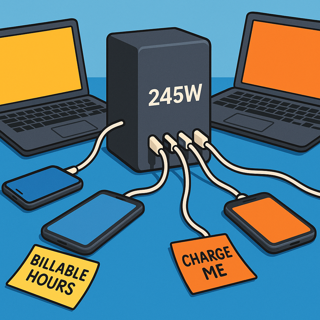 The premise was simple: 245 watts to charge a laptop, a phone, a tablet, a second laptop, maybe a drone, and possibly the reviewer’s moral compass. Initially, it seemed excessive. Then the office realized that being always at 100% battery is the new corporate wellness program.