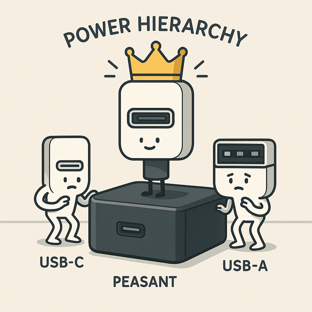 - USB‑C Prime – the 140W port reserved for the CEO’s 16-inch MacBook Pro and the one guy who says “I need it for compiling” even though he’s obviously in Slack memes all day.