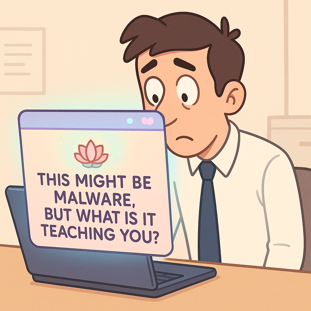 Instead of automatically blocking malicious files, INNERFIRE™ pauses your system and opens a full-screen reflection prompt: “What are you really seeking from this email titled ‘URGENT: REWIRE YOUR CHAKRAS FOR $7’? Safety? Belonging? A discount code?” Only after users complete a three-question emotional check-in does the AI decide whether to allow the malware to proceed “as a learning experience.”
