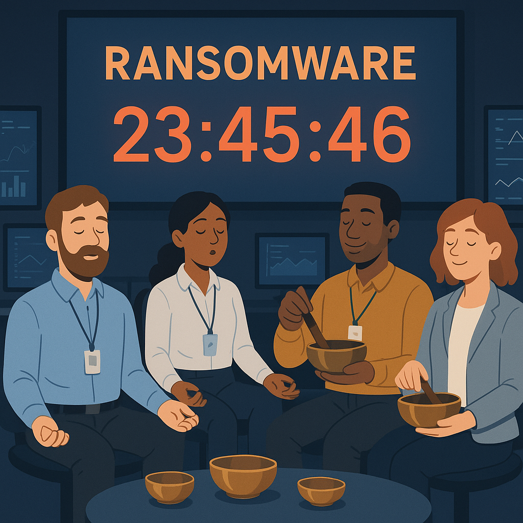 Citing OpenAI’s emphasis on “safe and beneficial” AI, EU digital policy frameworks, and the fact that Sam Altman looks “like a man who definitely owns a singing bowl” (per a recent Guardian profile), SerenitySec argues the future of cybersecurity is “less firewalls, more feelings.” The company’s pitch deck, briefly spotted on a café projector before being replaced by a guided visualization, claimed that 82% of data breaches could be prevented “if the attacker had simply drunk more water and texted their therapist.”