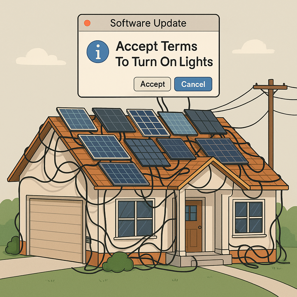“Imagine a future where your house loses electricity unless you tap ‘I agree’ on a 47-page software update from Tesla Energy,” sighed one grid researcher. “No one should have to scroll that much to make coffee.”